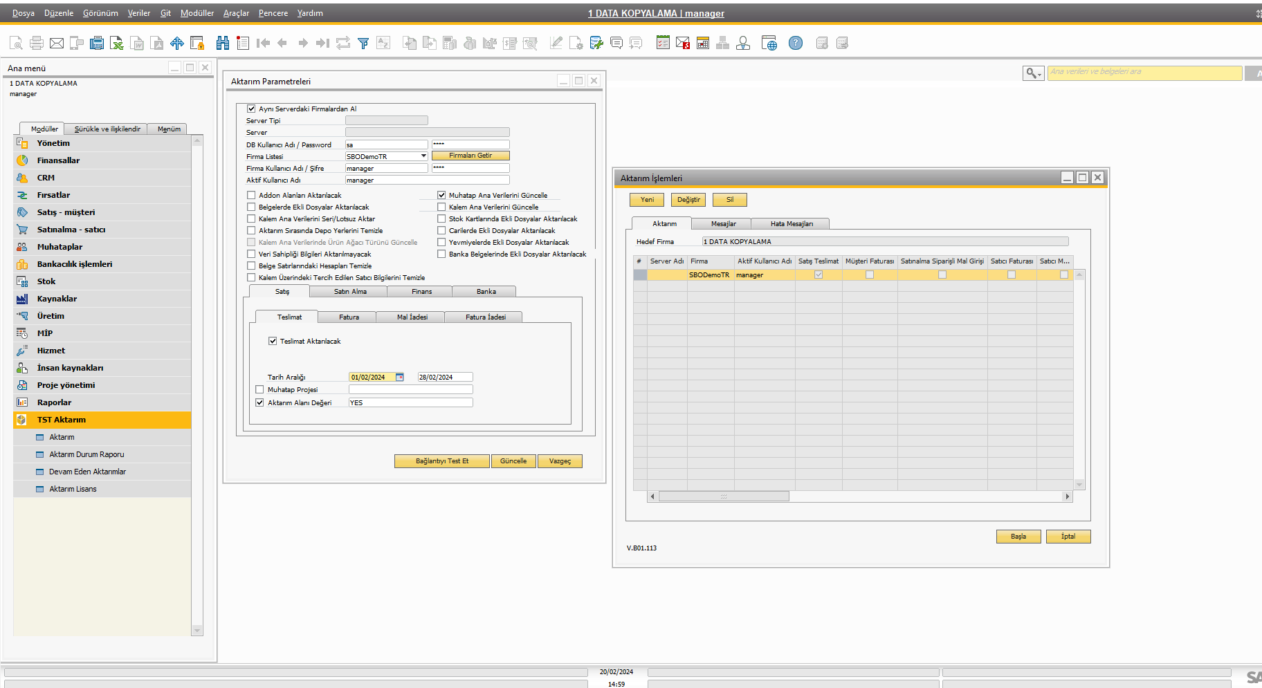 Ana Veri Dağıtımı add-on’u, işletmenizin ana verilerini (Muhataplar, Kalem Ana Verileri, Fiyat Listeleri, Ürün Ağaçları vb.) belirlenen filtreler ile, seçilen firmalara güvenli ve verimli bir şekilde aktarır. Anlık transfer özelliği, departmanlar ve iş ortakları arasındaki bilgi akışını hızlandırır, karar alma süreçlerini geliştirir ve operasyonel verimliliği artırır. Detaylı izleme ve raporlama ile add-on’u, ana veriler üzerinde tam kontrol sağlar, işletmenizin veri bütünlüğünü korur ve veri yönetimini iyileştirir.