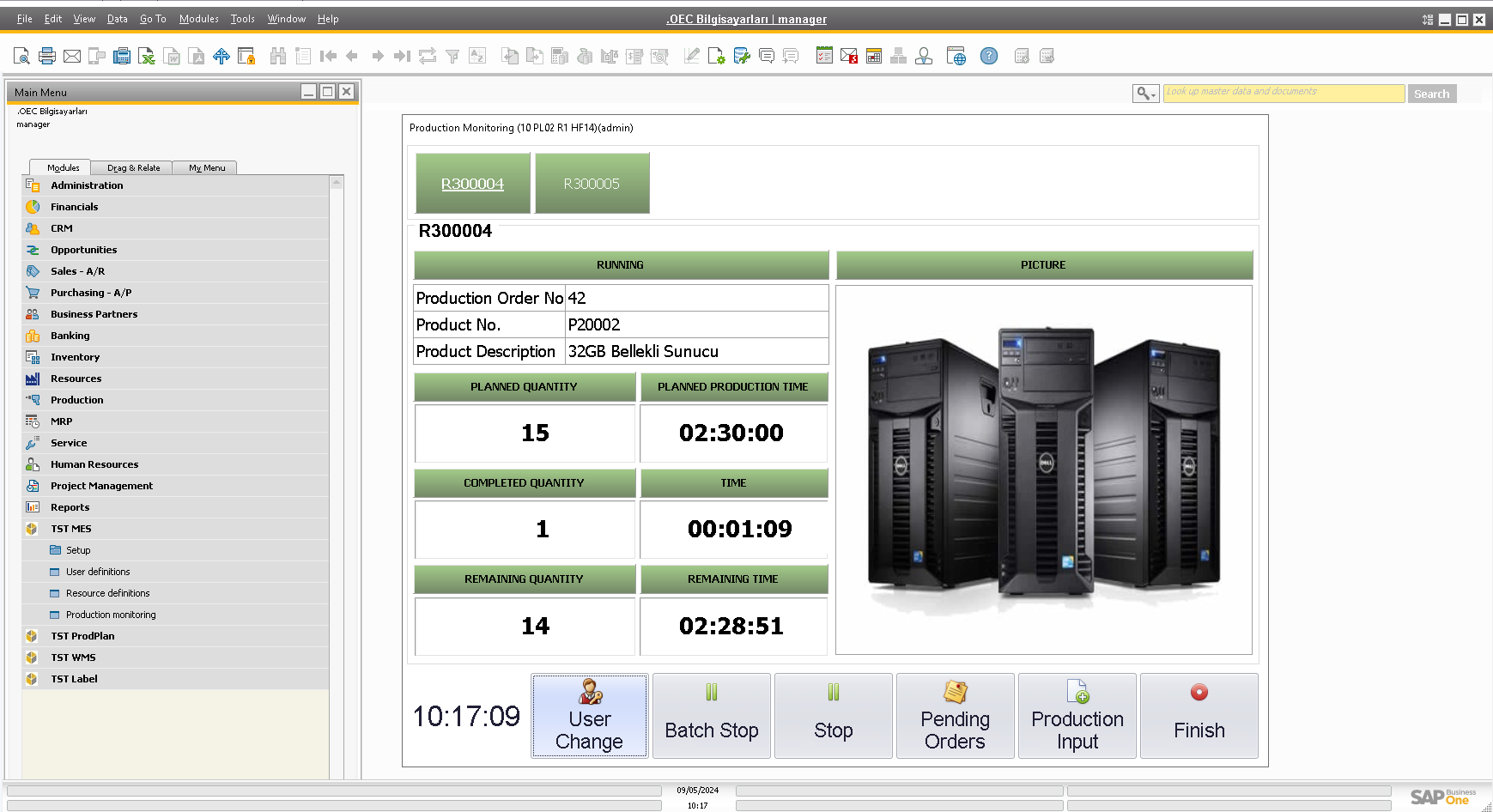 TST’nin Üretim Yönetim Sistemi (MES), üretim sürecinin başlangıcından bitişine kadar olan aşamaları takip eder ve ERP sistemleriyle tam entegrasyon sağlar. Bu sistem, fabrika performansını artırma ve üretimdeki verimliliği maksimize etme amacı güder. Anlık veri akışı ile iş süreçlerini optimize ederek üretim kalitesini yükseltir ve olası hataları minimize eder, böylece işletmelerin daha etkin ve verimli çalışmasına olanak tanır.